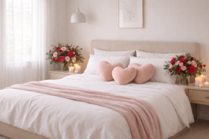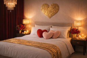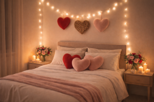 Valentine’s room decor focuses on atmosphere, emotion, and comfort. Soft lighting, romantic colors, meaningful details, and intentional styling work together to create a space where love feels present in every corner.